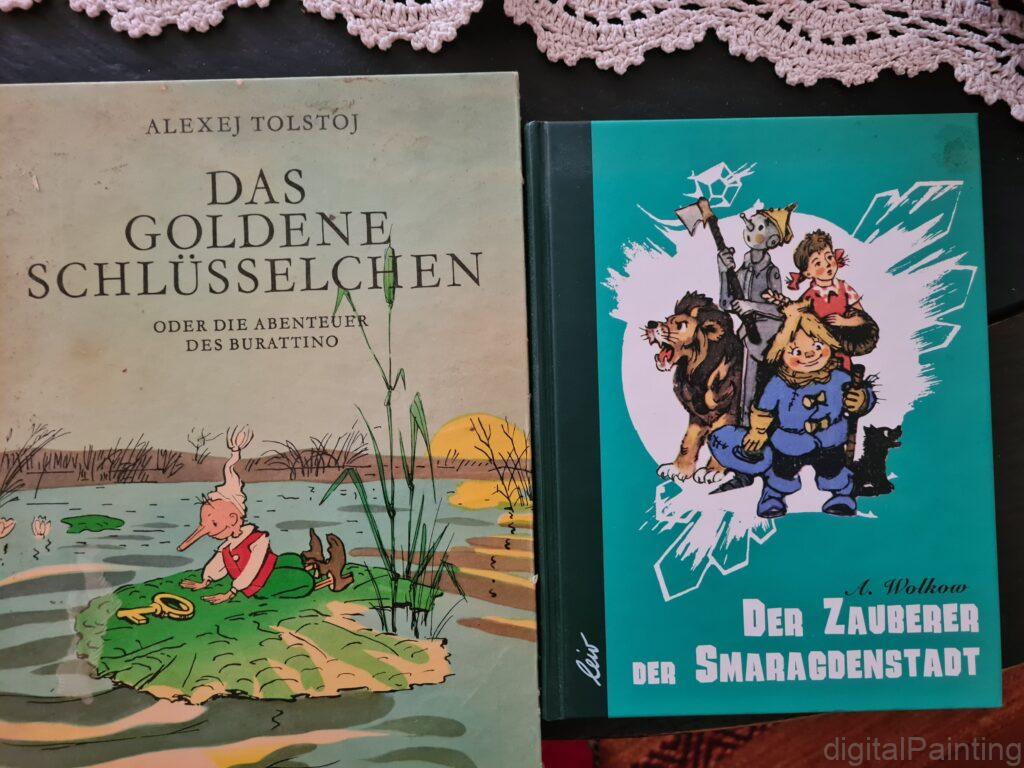 Ich habe schon immer gerne gelesen, das nicht gerade wenig und öfters auch mehrere Bücher (momentan ist es eine Abhandlung vom Nil und einen Thriller von einem meiner Lieblingsautoren Tom Clancy). Das fing eigentlich schon in der ersten Klasse an, nach dem ich lesen konnte habe ich mich sofort in der Schulbibliothek angemeldet. Ok was soll ich nun lesen, man durfte nur ein Buch mitnehmen aber welches die Auswahl war groß. Ich nahm dann den Vorschlag der Bibliothekarin an und habe von Alexander Wolkow „Der Zauberer der Smaragdenstadt“ mitgenommen. Ich war sofort gefangen von dem Buch; für die „Wessis“ es ist die Nachdichtung von „Der Zauberer von Oz“; und versank quasi in der Geschichte. Die anderen Bücher hatte ich dann selbstverständlich auch schnell gelesen. Und da war es um mich geschehen „BÜCHER“, zum Glück förderten meine Mutter, meine Großeltern und die Pateneltern von meiner Mutter meinen Lesedurst. Unter anderen auch mit dem Buch „Das goldene Schlüsselchen oder die Abenteuer des Burratino“ von Alexej Tolstoj; für die Wessis „Pinocchio“; die Bebilderung und auch das Cover war für DDR-Bücher etwas besonderes. Ich habe das Buch jetzt über 40 Jahre, es ist ein bisschen „durchgelesen“ aber es existiert noch. Damals in der DDR hat man jedes Jahr ein neues Buch besprochen von „Robinson Cruseo“ bis hin zu „Die Abenteuer des Werner Holt“, ich habe alle Bücher gleich durchgelesen das betraf auch andere Lehrbücher aus der Geographie, Heimatkunde etc..